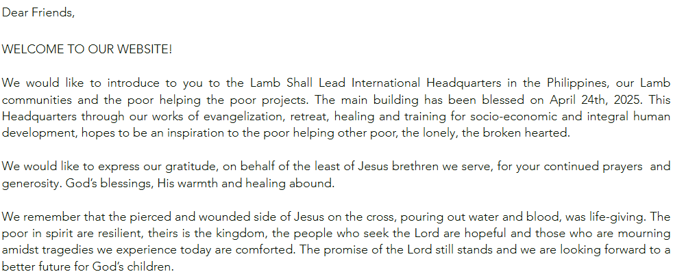 We are lay, religious and clergy striving to be like lambs. With the least of Jesus' brethren, we stand in the gap and, together, lead in transforming the world and society
